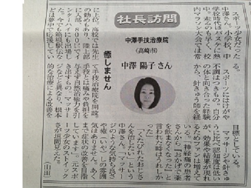 掲載情報 - 高崎市の高度整体治療院/中澤手技治療院。女性専用。高度整体法でおなたのお悩みを根本的に改善いたします。